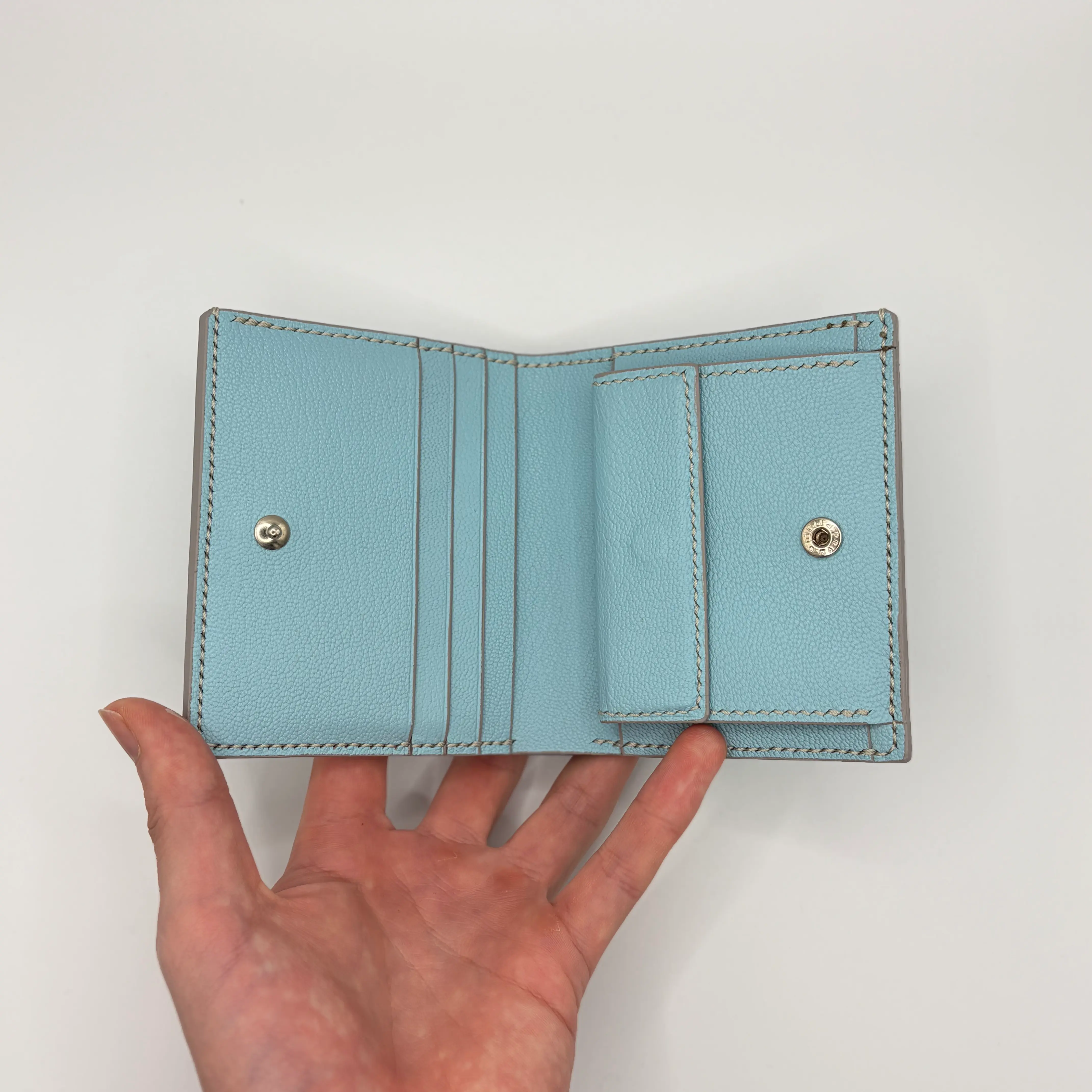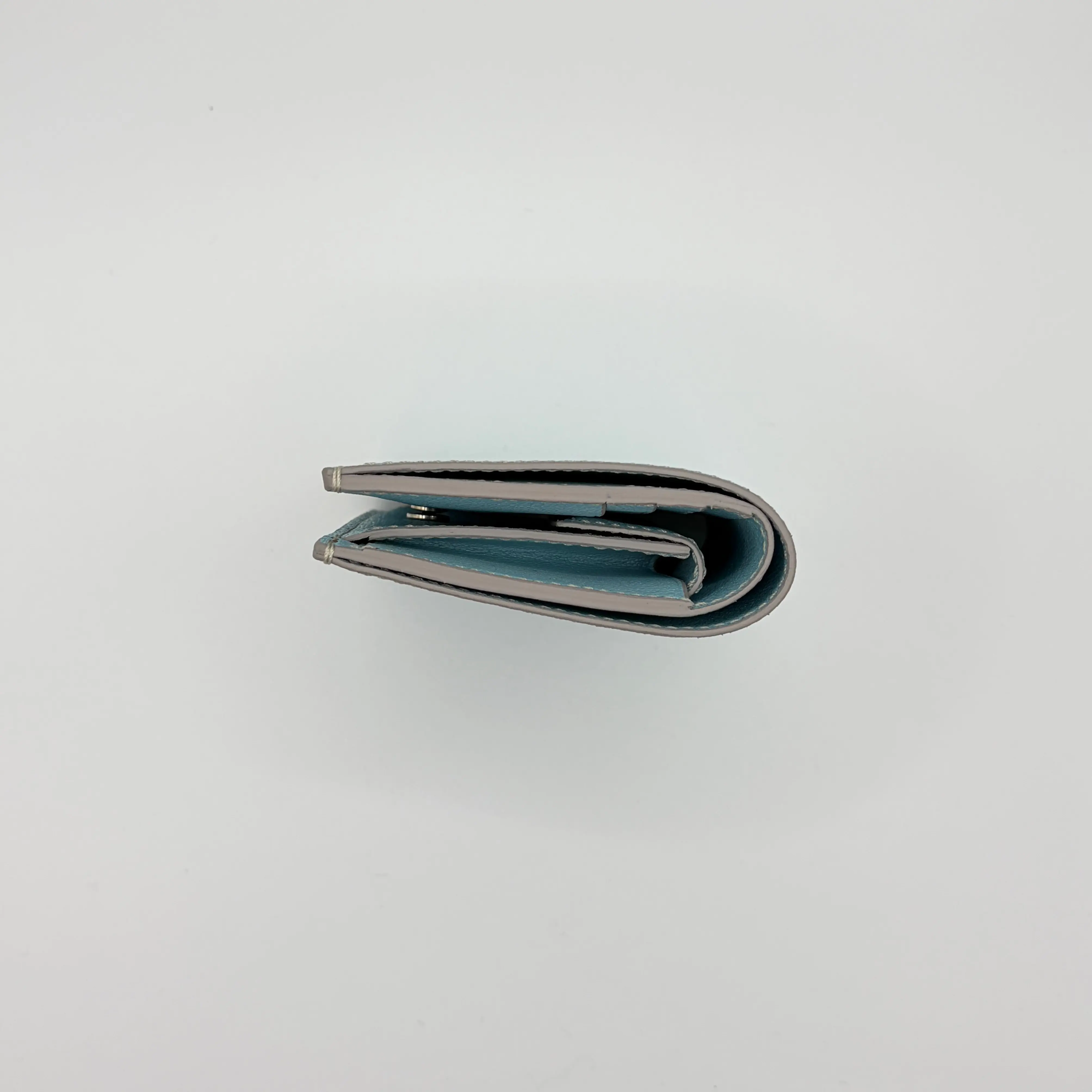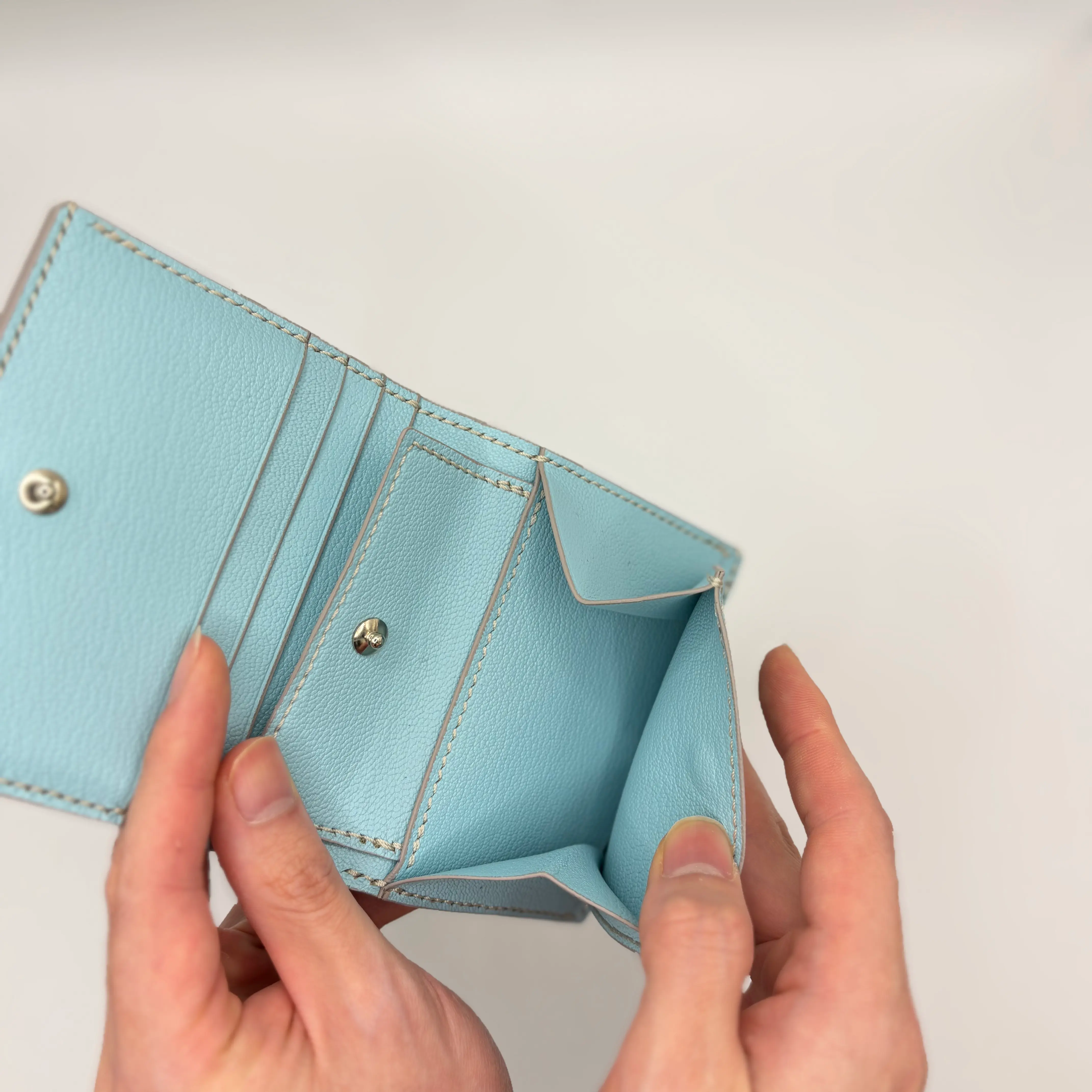 Itsumoarigatoneを象徴する財布 Sabi 淡い水色の2つ折りの財布になっています。 コンパクトで手に馴染みます。 フランス産のシェーブル(やぎ)を贅沢に使用した財布になります。 床面(革の裏側)が見えない仕様となっており、高級感があります。 !!!!!!!!!! 受注生産のため制作に1~3週間ほどかかります。